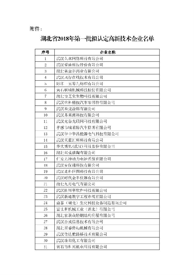 附件:湖北省2018年第一批擬認(rèn)定高新技術(shù)企業(yè)名單