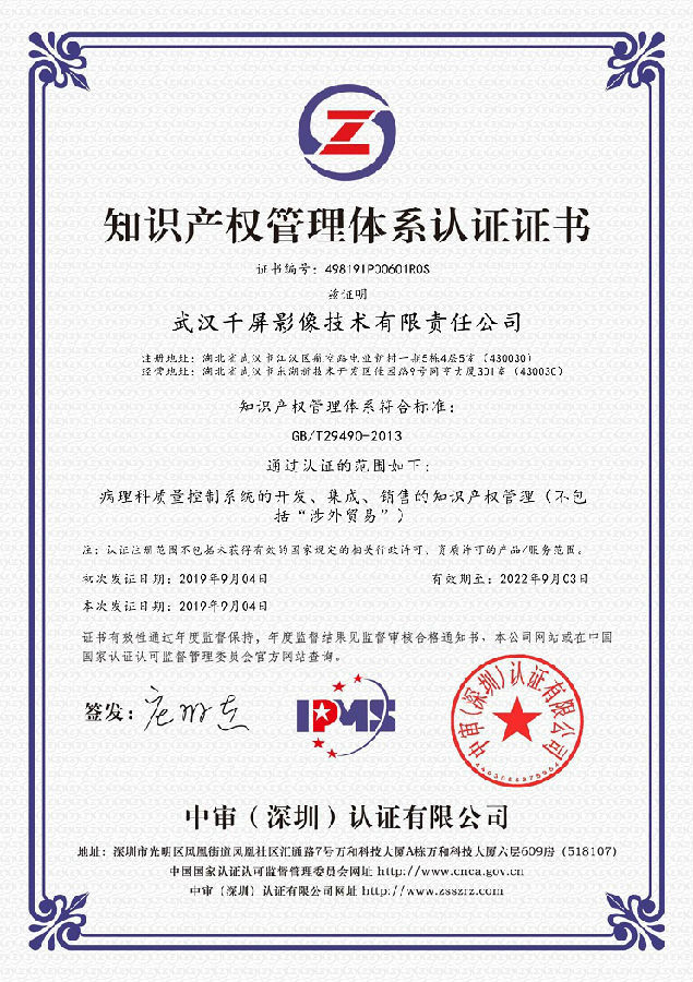 熱烈祝賀武漢千屏影像技術有限責任公司于2019年9月獲得知識產權貫標認證證書,公司在知識產權管理體系的建立、實施工作中取得階段性成果,意味著公司知識產權的規(guī)范進入常態(tài)化。