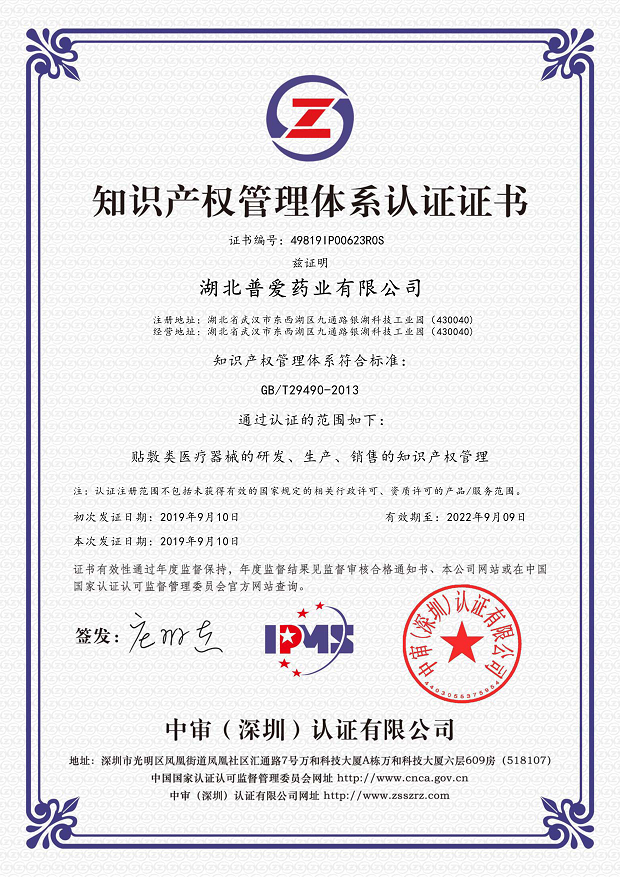 熱烈祝賀湖北普愛藥業(yè)有限公司于2019年9月獲得知識產(chǎn)權(quán)貫標認證證書,這意味著湖北普愛藥業(yè)有限公司在知識產(chǎn)權(quán)領域獲得到重要認可,在知識產(chǎn)權(quán)方面得到進一步規(guī)范和在綜合競爭力得到進一步提升。