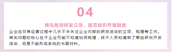 因此,企業(yè)要在前期做好項目規(guī)劃與定位,做好立項評估,注重立項管理,建立制度保障使風險可控;同時還可以借助外力,突破技術難題,以此推動企業(yè)形成科技成果轉(zhuǎn)化,才能使其在評分中拿到高分。