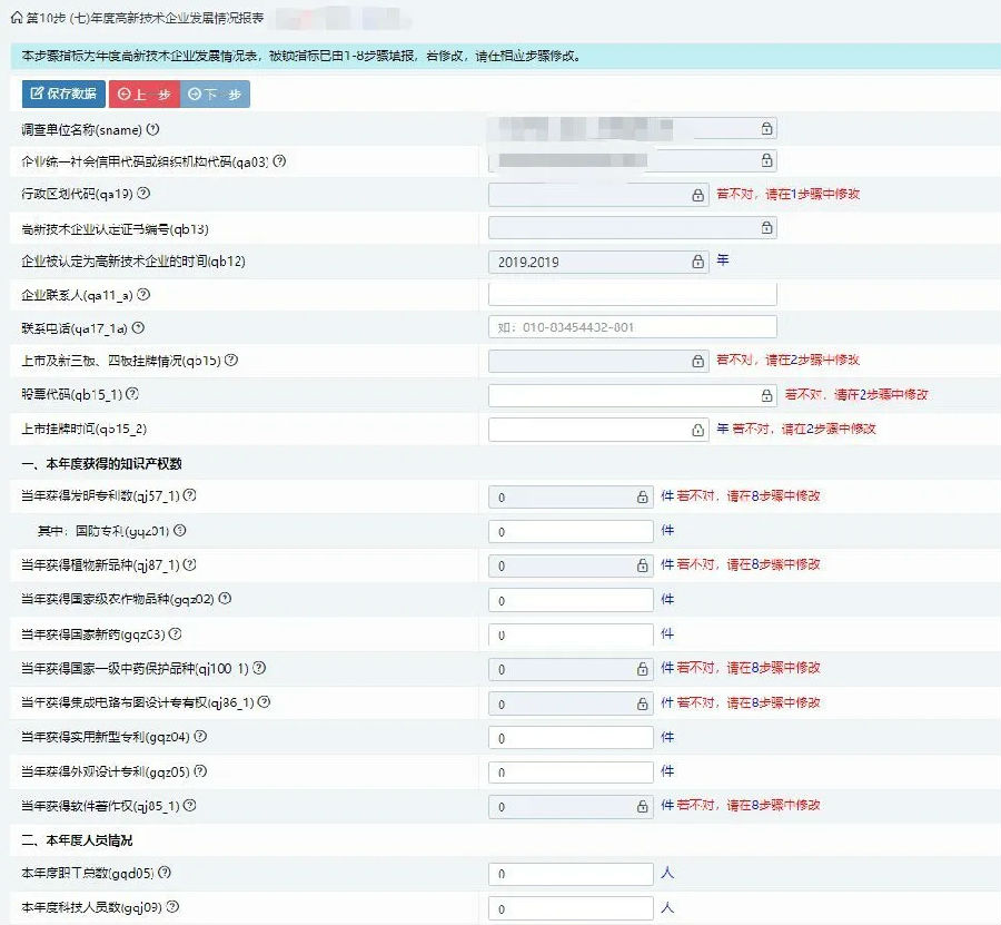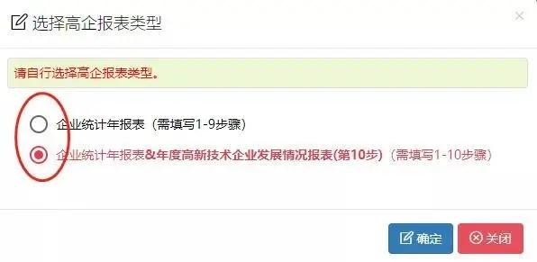 注意:以上兩個選項任選其一進行填報,區(qū)別在于第二個選項中第10步的數(shù)據(jù)直接同步到高新技術(shù)企業(yè)發(fā)展情況報表,建議財務報表數(shù)據(jù)已確定的企業(yè)直接進入第二個選項填報。